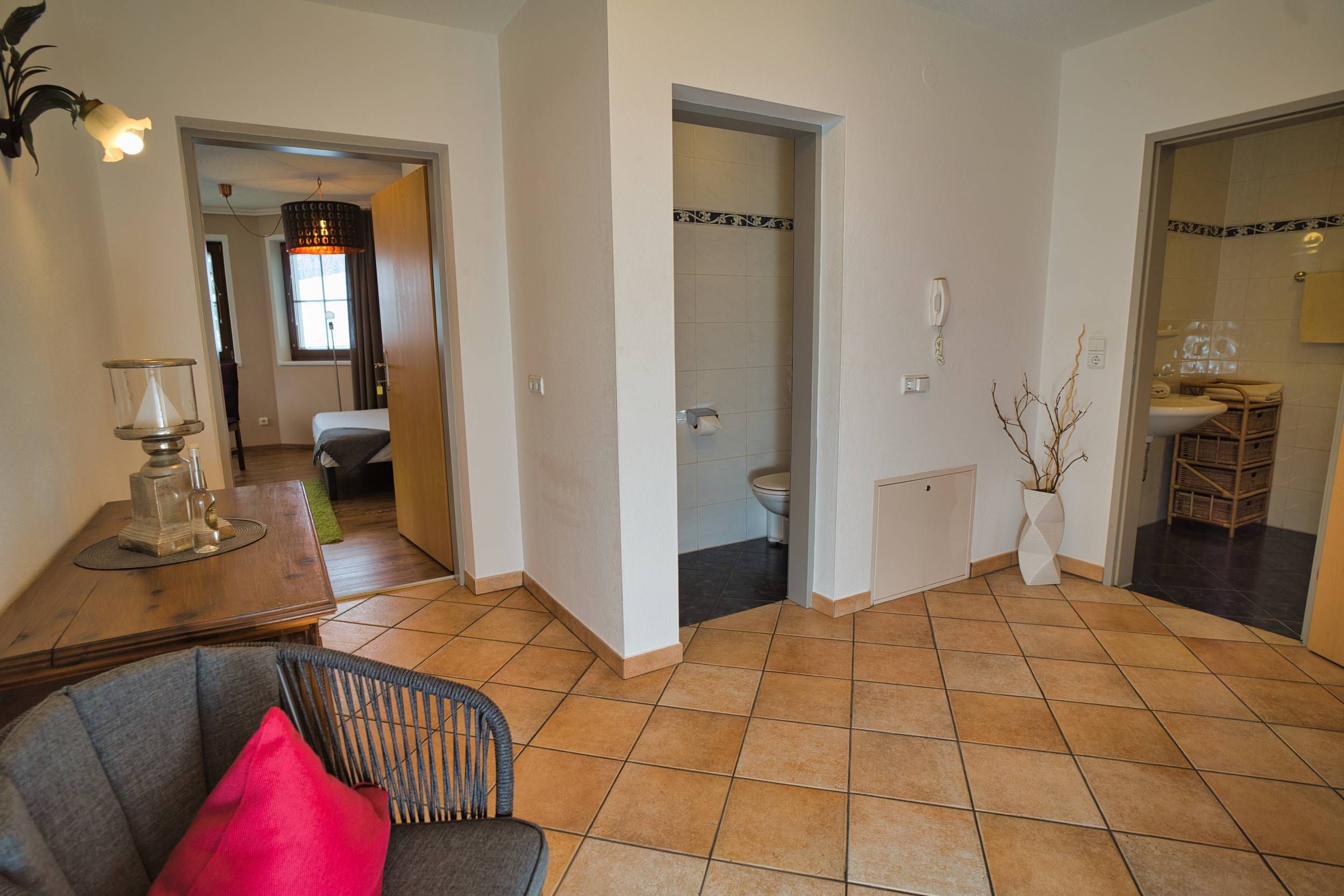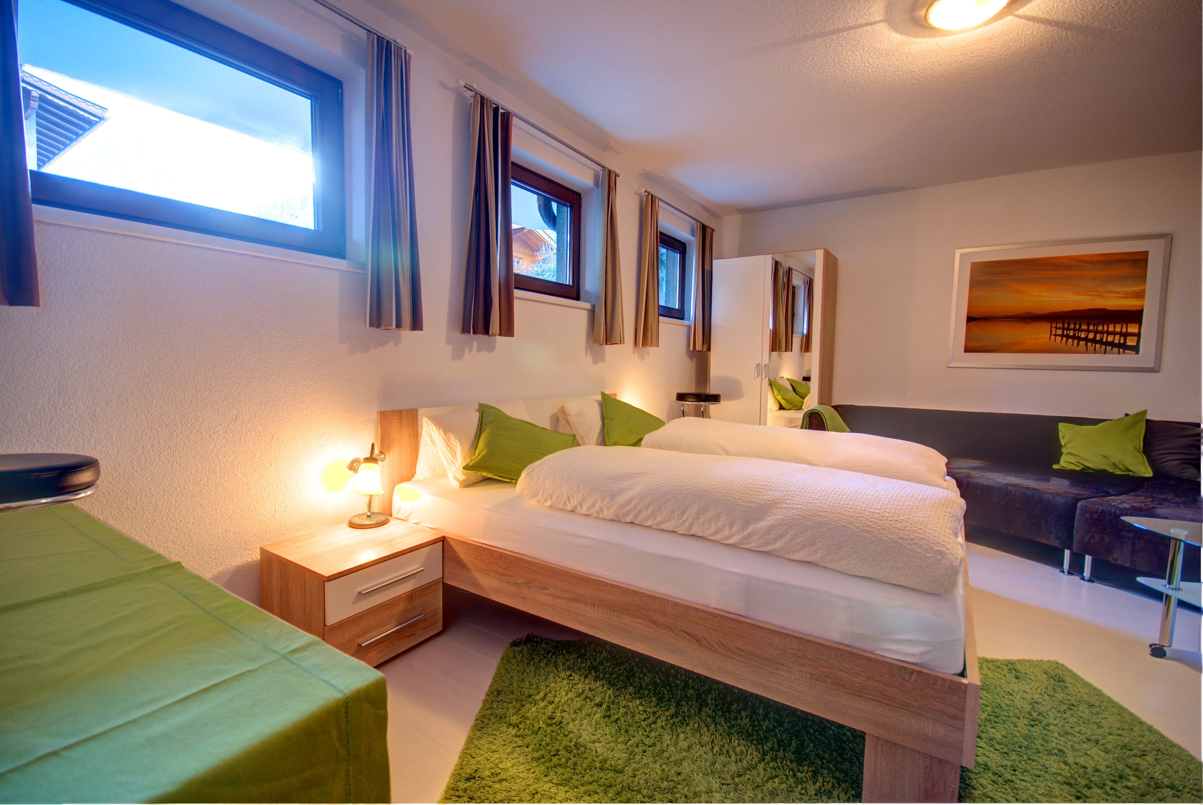 Unser Kellerzimmer befindet sich in der untersten Etage, und kann nur in Kombination mit einer Ferienwohnung gemietet werden. Ein Badezimmer ist ebenfalls dabei, jedoch am Gang.